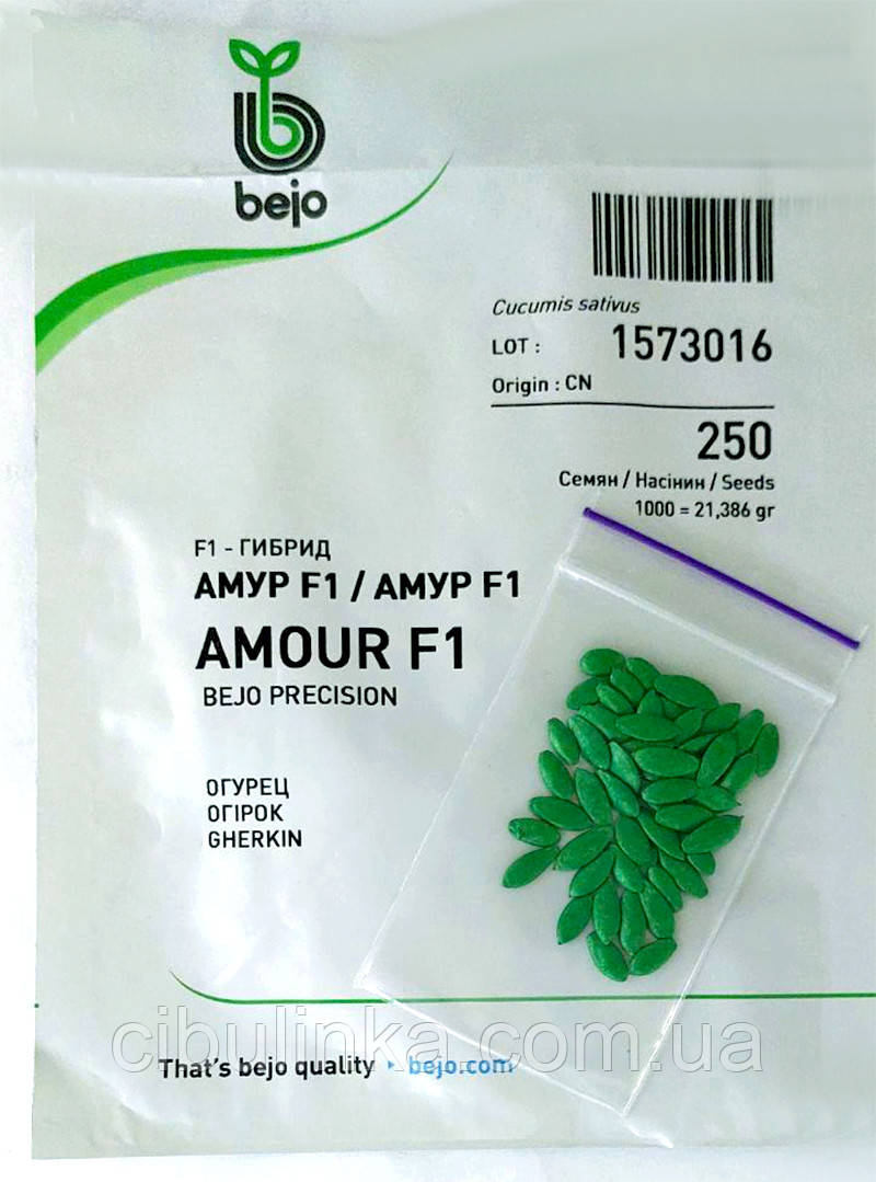 Огірок Амур F1 — високоврожайний ультраранній самозапильний гібрид від нідерландської селекційної компанії Bejo Zaden. Поєднання високої швидкостиглості (40-45 днів) й утворення на одному вузлі до 8 корнішонів дають можливість цьому гібриду бути в загоні улюблених серед дачників і фермерів. Плоди Амур F1 однорідні, з легкими шипами, однорідного зеленого кольору.