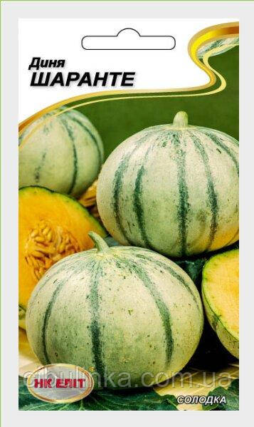 Диня Шаранте - середньостиглий сорт дині. Вегетаційний період – 90 днів. Рослина довгоплетиста, сильно гілляста, потужна. Плоди невеликі, вагою 0,9-1,2 кг, кулястої форми зі слабо сегментованою тонкою сіткою, забарвлення світло-сіре, смугасті. М'якуш жовто-оранжевий, соковий, сладкий, ароматний, з високим вмістом цукру. Транспортабельність висока. Споживають у свіжому вигляді. Рослинам потрібний полив, прополювання, рихлення та підживлення.
